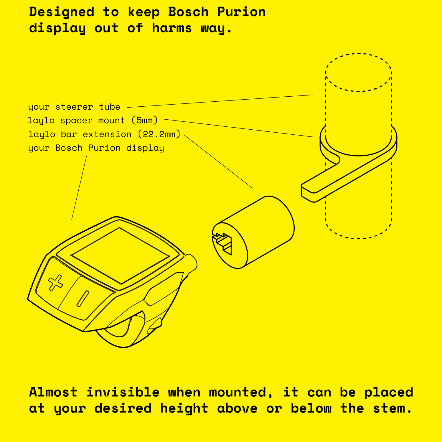 The laylo mount works perfectly to protect and lower the Bosch Purion display.
